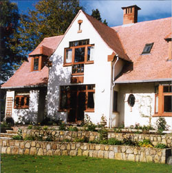 The traditional appearance of the new house, set in the Old Bearsden Outstanding Conservation Area and completed in 1991, belies its energy-efficient construction, with triple-glazed windows and high levels of thermal insulation. The house and garden incorporate specially commissioned furniture and artworks. |